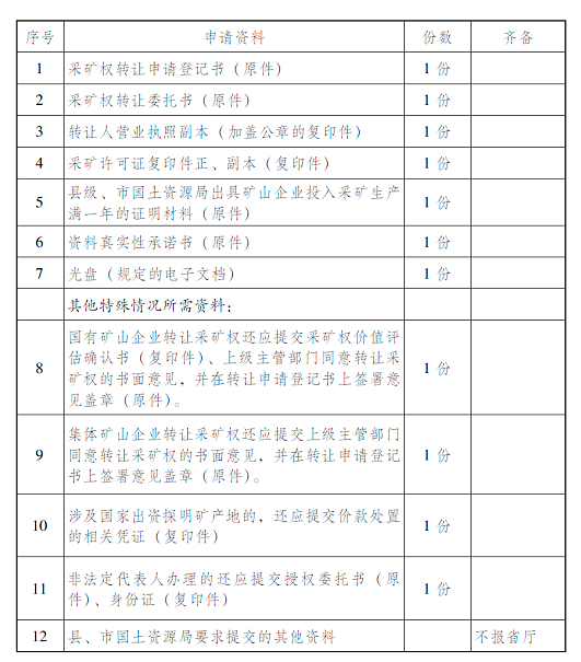 三、采礦權(quán)轉(zhuǎn)讓(招拍掛) 申報資料清單