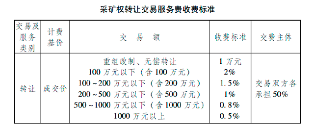說明:采礦權(quán)交易服務(wù)費采用按交易額和費率分段累加計費。超額累進計算法為:交易服務(wù)費=Σ(總成交價相應(yīng)級距部分金額×相應(yīng)級距比例)